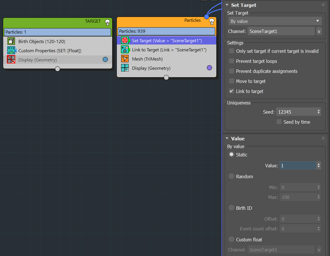 How to link particles to target by custom float? - Printable Version +- tyFlow Forum (https://forum.tyflow.com) +-- Forum: tyFlow Discussion (https://forum.tyflow.com/forum-1.html) +--- Forum: General Discussion (https://forum.tyflow.com/forum-2.html) +--- Thread: How to link particles to target by custom float? (/thread-3832.html) |