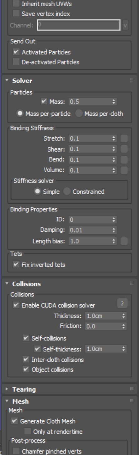 I have a cloth sim that is basically a bunch of strips that are attached via an object bind to a bus as its driving along. Its set to continuous in the time parameters