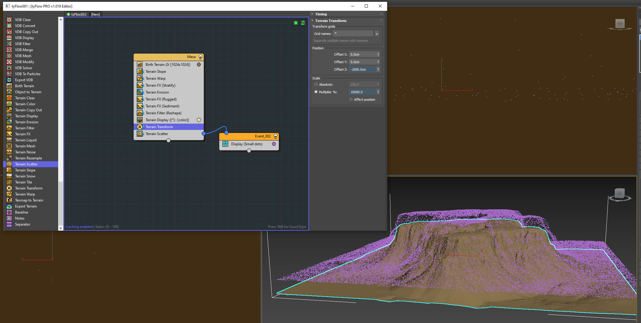 If you use transform on a terrain, and offset in the Z, then any scatter particles are still aligned to the original position - although X and Y do work?