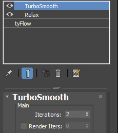 in Particle Simulations often "relax" and "turbosmooth" were used.