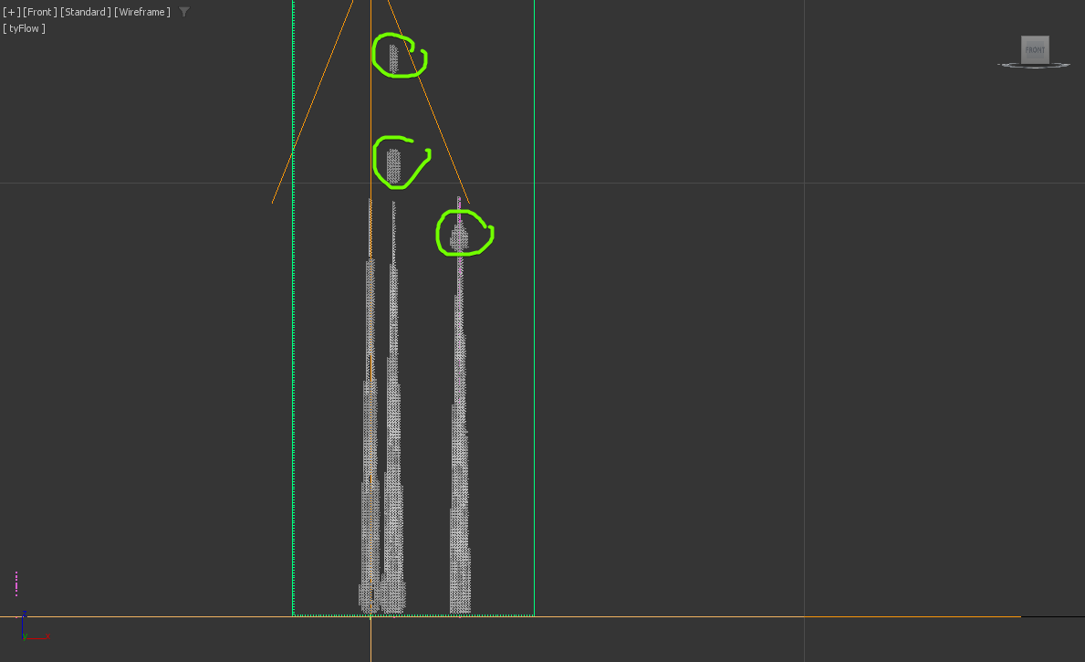 In the atttached screenshot - the green areas are the problematic ones. The left smoke spike is using pFlow and works as expected - the middle and the right one are using tyFlow.