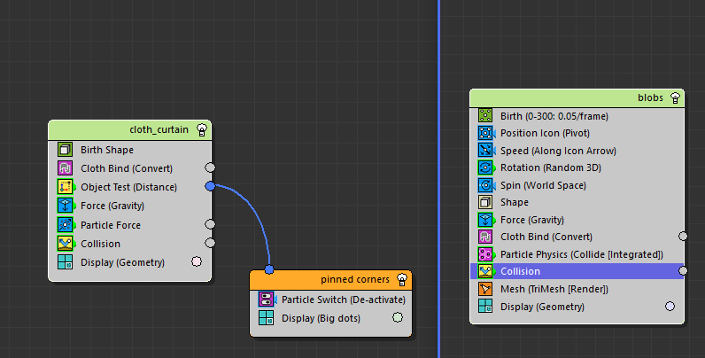 1. the cloth objects don't seem to collide with each other, they just pass through. I'd like to get the objects to collide together. My only idea at the moment is to create multiple particle groups and set them to collide somehow. Is this the correct direction to go or is there another/simpler way?